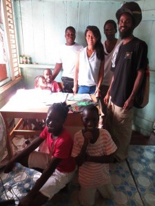 ANTHEA McGIBBON PHOTO: Volunteer teachers and assistants stand while some students sit. From left standing are Dwane Dawes, Rico Nagase, Peter Johnson,