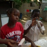 Outside the children aged 7-13 had a ball learning to use flour in a different way under the guidance and supervision of Sandra Green with Anthea McGibbon and Peter Johnson assisting.